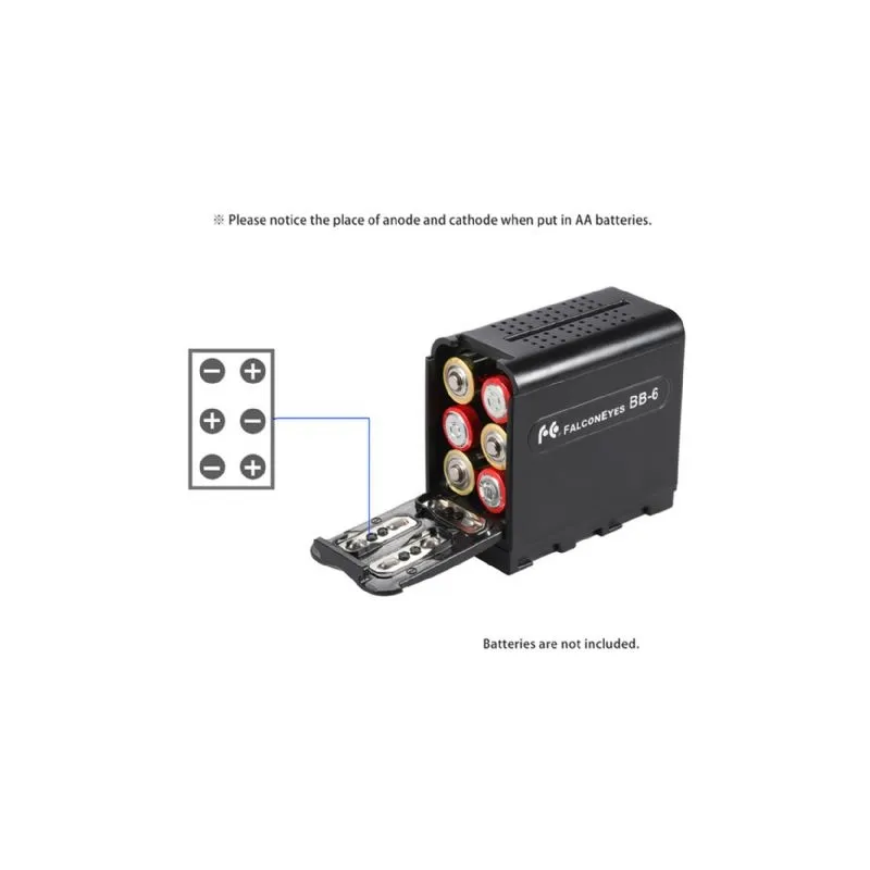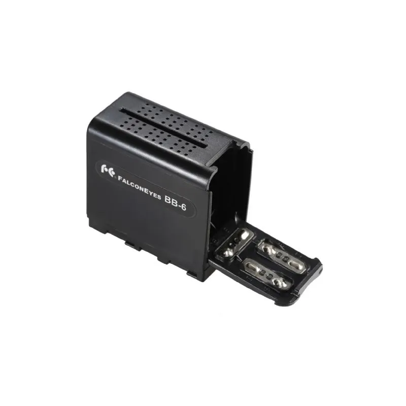 The BB-06 from Falcon Eyes is a battery pack with NP-F connection, which is suitable for multiple Falcon Eyes LED lamps. You can also use the BB-06 to power other devices with the generally known NP-F connector. This connection type is used a lot, for video and audio accessories. The BB-06 is ready to use after you place 6 AA batteries inside. Compatible with the Falcon Eyes DV-96, DV-216, DV-80SL, DV-240SL and DV-300F2.