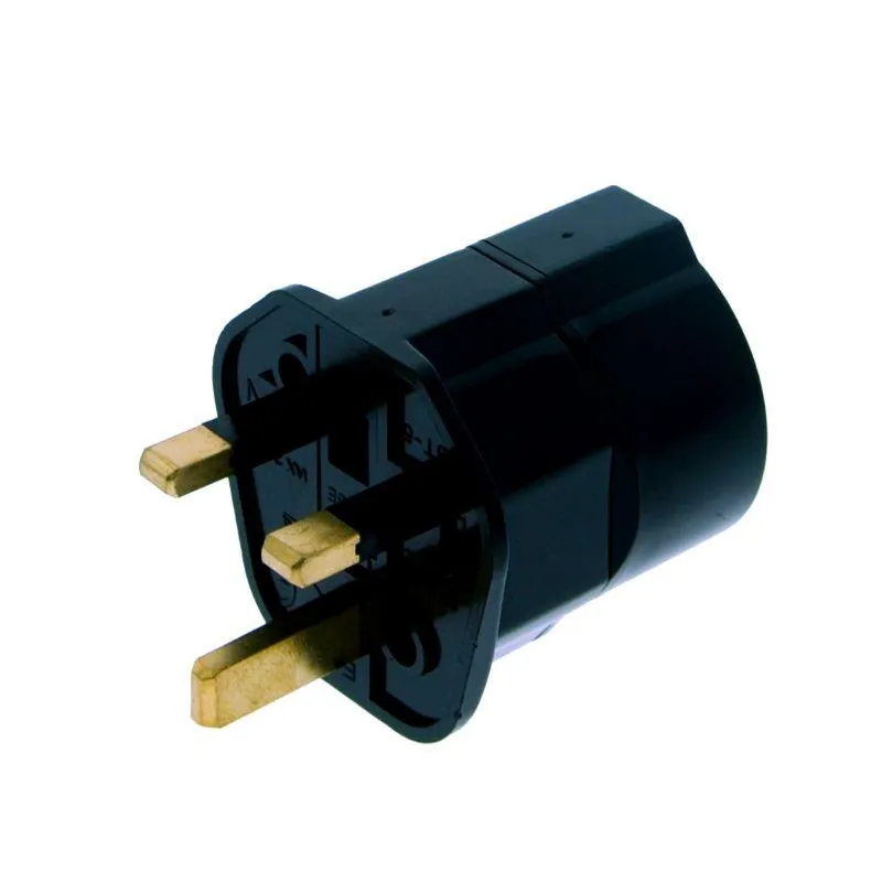 UK adapter plug for all devices with a Euro plug. Suitable for connectors with or without earthed plug. The adapter has no integrated fuse.