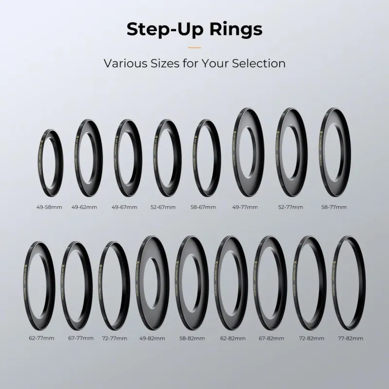 K&F Concept 67-82mm Step Up Brass Filter Adapter Ring, Thickness 2.9mm, W/ 3pcs Cleaning Cloth KF05.325