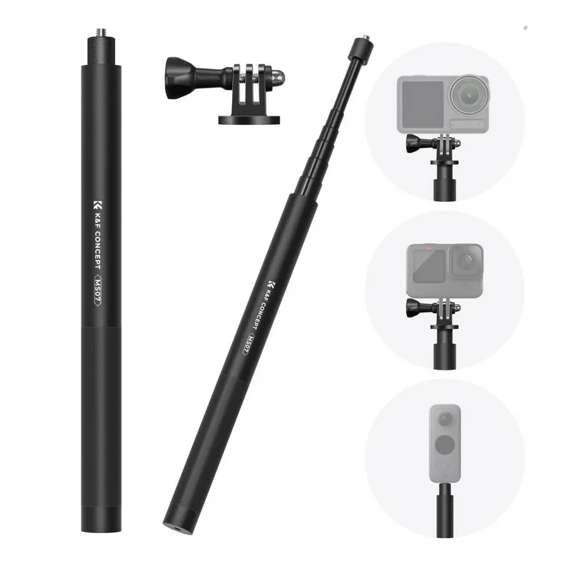 The K&F MS07 is a versatile 60-inch extra-long extension pole, ideal for capturing panoramic shots and distant close-ups with ease. Designed for both professional photographers and amateurs, this selfie stick ensures your shooting area is no longer limited. Its high-quality aluminum alloy construction guarantees durability, while the 1/4-inch connector at the base allows for easy mounting on a stand. The tension tube design provides solid support and stability, and the silicone handle ensures a comfortable grip during use.