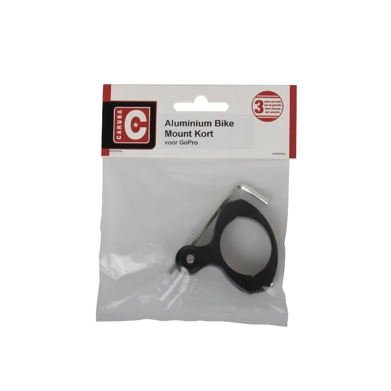 Caruba Aluminium Bike Mount Short for GoPro With this Caruba Aluminium Bike Mount Short for GoPro you can easily mount your GoPro on, for example, the handlebars of your bike or motorbike. The GoPro Aluminium Bike Mount can be attached to tubes with a maximum diameter of 28mm.