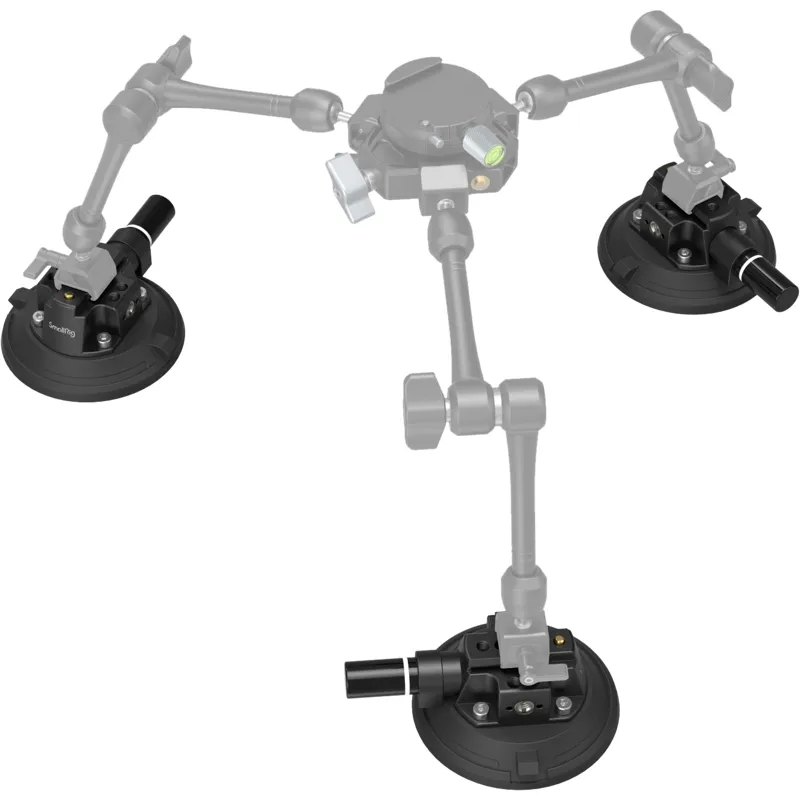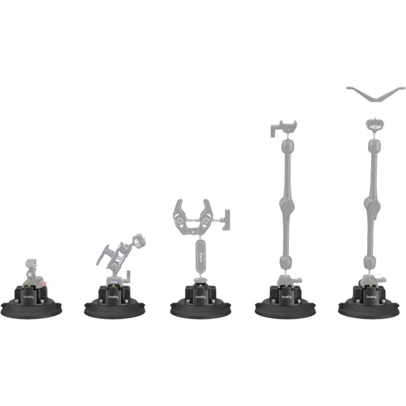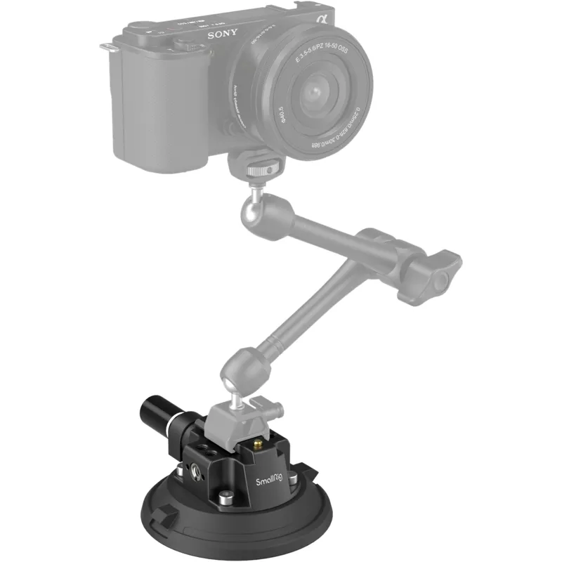 SmallRig 4″ Suction Cup Camera Mount 4122 consists of a suction cup mount, sucker, hand pump, and dust cover. The suction cup camera mount, made mostly of robust and wear-resistant NBR, can work at -20° C to 60° C. It is not easily deformed and features great airtightness, suitable for clean, dry, and smooth surfaces. With powerful suction force, it has maximum horizontal suction of 50 kg and maximum vertical suction of 35 kg. The aluminum-alloy suction cup camera mount comes with such accessory mounting points as 1/4"-20 threaded holes, 3/8”-16 threaded holes, and ARRI 3/8"-16 locating holes for attaching 3757, 3873, 3874, 2906B, 2070B, 2115C, etc. It is manually pumped and locked, with a safety-line indicator to ensure safety and reliability. When not in use, put on the dust cover to prevent dust for longer service life.