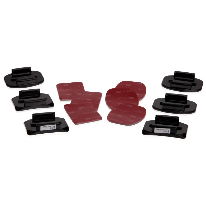 The PRO-mount Flat & Curved Mounts are the standard mounts supplied with most GoPro / Action Cameras. This package consists of three flat and three curved (for example for helmets), 3M ™ adhesive mounts.