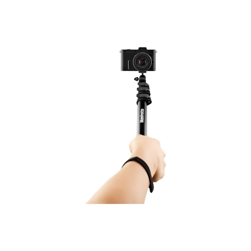 The Compact Extreme 2-in-1 Monopod & Pole from Manfrotto is a versatile support designed for your point and shoot or action camera. With a dual configuration design the compact extreme can be used as a handheld pole for getting high or low action shots as well as self recordings. It can also be converted to a monopod in order to stabilize your camera in low light or for effect. In order to utilize these functions the monopod includes two 1/4"-20 threads, one on top and a removable rubber foot covers the threads on the bottom. The monopod features an aluminum and technopolymer 4-section design, allowing it to maintain its strength and light weight. It can support up to 2.2 lb, folds down to a compact 15.8", extends to 51.5" and weighs only 0.7 lb. Included with the monopod are a single action ball head and proprietary GoPro mount.