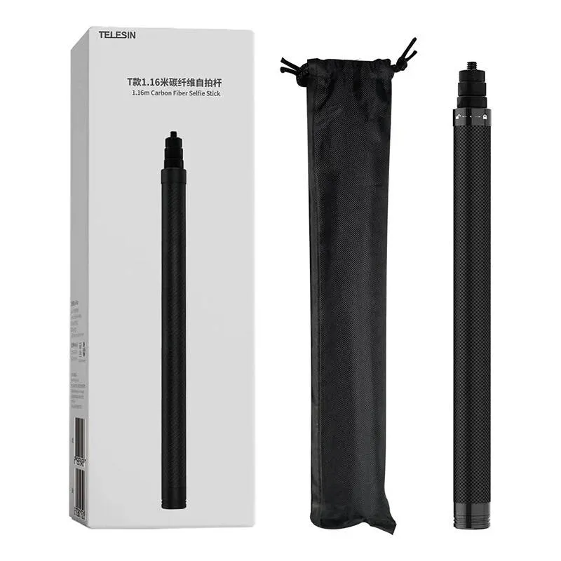 The Telesin Carbon Fiber Selfie Stick is perfect for extreme sports, travel, and photography enthusiasts. Its advanced design and high-quality materials enable wide-angle shots and stunning panoramas in any conditions.