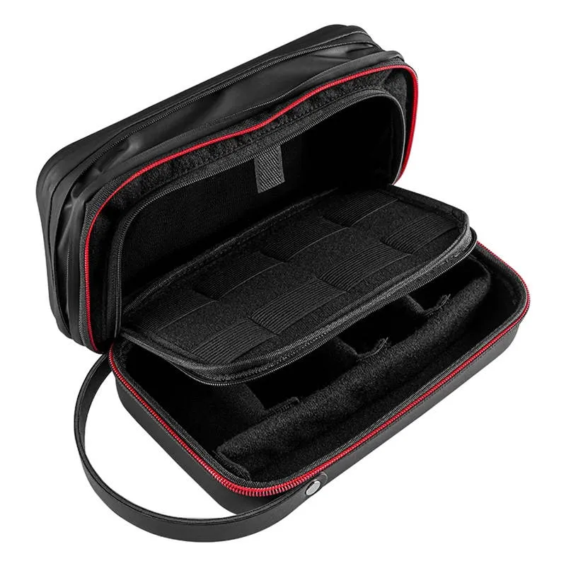 TELESIN protection bag was created with the utmost care, and its modern design will appeal to even the most demanding. You dont have to worry about scratching your equipment, as it is very soft inside. Whats more, its case exhibits incredible hardness, which protects the devices inside from being crushed. It also exhibits IPX4 water resistance, which means it wont be afraid of splashes or rainy weather. For greater carrying comfort, it has been equipped with a movable handle.