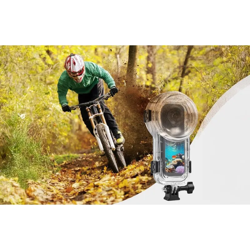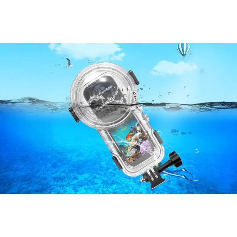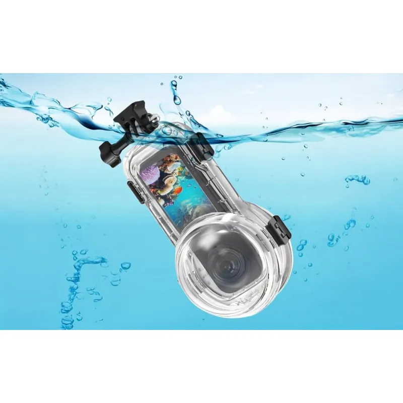 Korpusas buvo sukurtas remiantis tikru Insta360 X5 kameros modeliu, todėl jis tiksliai priglunda prie Insta360 X5 ir neapriboja jos galimybių. Visos mygtukai ir dizaino elementai išlaiko visišką funkcionalumą, leidžiančią patogiai dirbti net po vandeniu. Dėl to galite tikėtis nepriekaištingo kameros veikimo visomis sąlygomis.