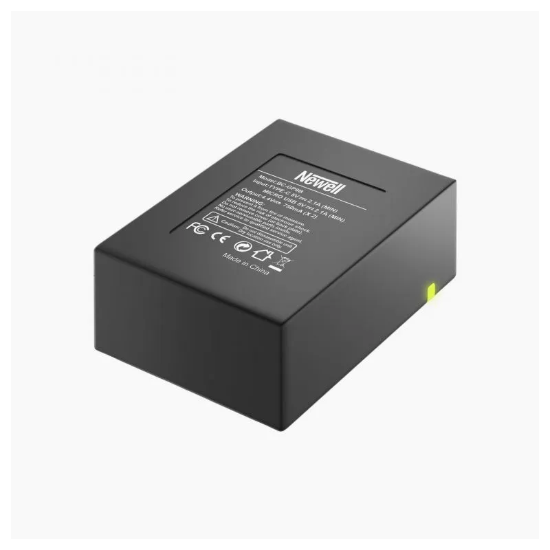 Newell SDC-USB is the smallest dual-channel charger available. Its compact size means you can pack it with your gear and take it on any trip. Specifications - power supply: 5V; min 2.1A - charging current: 2x 4.4 V; 750 mA - charger dimensions: 6 x 4.5 x 2 cm - weight: 23 g (without cable) Compatibility - Battery pack: AHDBT-901 for Gopro 9, 10