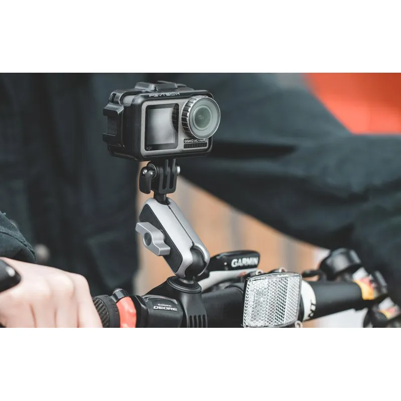 Mount your GoPro, DJI Osmo Action, Insta360, or other action camera weighing up to 10.6 oz to a handlebar, seat post, ski pole, or any other rod or pipe measuring 0.3 to 1.4" in diameter with this Action Camera Handlebar Mount from PGYTECH. The durable aluminum mount features a magic arm with a standard GoPro-style 3-prong action camera mount on one end and a quick release pipe clamp on the other end. The 3-prong mount features a quick release pin so you can mount and remove the camera quickly and easily, and two are included.