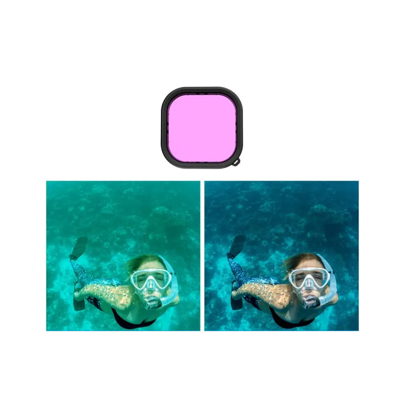 You will use the pink filter when diving in the sea at a depth of 5-25 m. It will be especially useful for snorkeling enthusiasts. It helps correct color deviation and eliminates blue discoloration in photos and videos.
