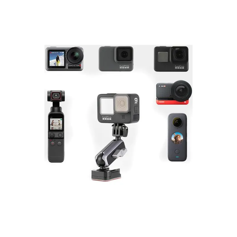 Mount fits sports cameras such as, GoPro, Insta One R / X / X2, Osmo Pocket / Pocket 2 and Osmo Action.