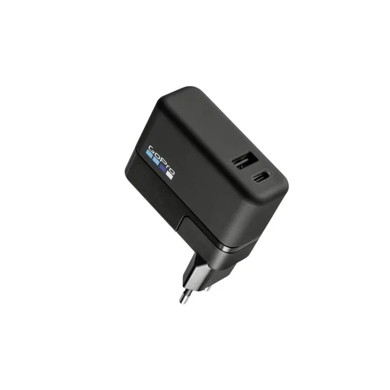 The fastest way to charge your GoPro, the 27.5W Supercharger (International Dual-Port Charger) lets you charge two GoPro devices simultaneously—anywhere in the world. The USB-C port offers 20 to 70% faster charging on fast-charge compatible devices compared to using a conventional charger. You can also continuously power your GoPro during longer captures. Includes interchangeable AC plugs for US, UK, EU and AU style wall sockets.