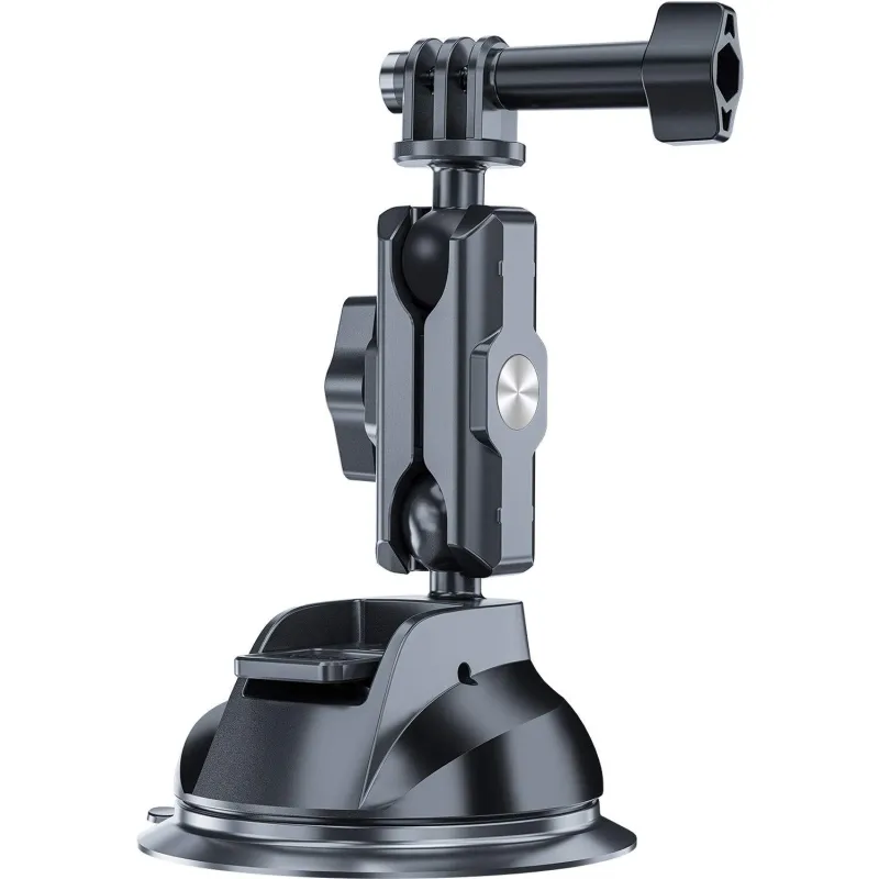 The Universal Camera Suction Cup Holder from TELESIN is a locking suction cup camera mount that makes video and photography possible from almost any smooth surface, including on surfboards, motorcycles, wakeboards, ATVs, helmets, windows, and more. It features dual-adjustable joints, a 360° rotating ball head, and a 1/4"-20 mounting screw. It will hold cameras up to 22 lb.