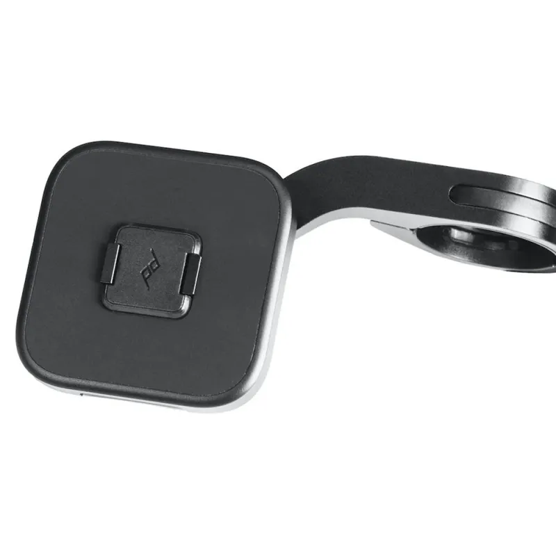 The Peak Design Mobile series bike phone holder allows you to rigidly attach your phone to your bikes handlebar for instant access and even flip it up to film your ride. The holder is made of ultra-lightweight machined/anodized aluminum and features super-strong magnetic locking technology (called SlimLink™). You can immediately remove the phone from the holder with just one press of a button. The holder is designed to hold the phone in front of the handlebars to optimize viewing and also allows you to mount it behind or under the handlebar for use with a bike computer. The included accessory mount allows you to attach a bike light or an adventure camera.
