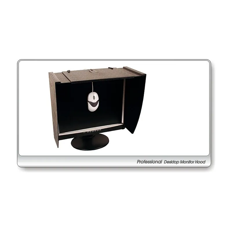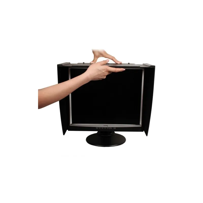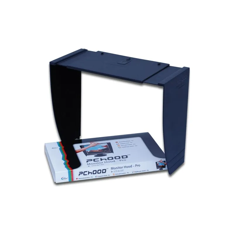 A universal monitor hood suitable for all LCD and CRT monitors 27"- 36” The PChOOD Large Monitor Hood - Pro is the ideal way to shield light from your monitor display and provides an optimised, accurate and confidential working environment. The PChOOD Large Monitor Hood - Pro boasts superior quality, universal design and is fully adjustable which means it is suitable for any LCD or CRT monitor between 27” and 36”. The specially designed black velvet inner layer absorbs light and eliminates reflections, whilst an anti-static external layer minimises dust attraction. The PChOOD Large Monitor Hood - Pro consists of simple, durable parts which slot together for easy assembly. And because it allows you to set your display brightness lower, your monitor will use up to 40% less power (kind to the environment, kind to your wallet!) and extends its life, whilst also reducing the risk of eye strain. The PChOOD Monitor Hood - Pro boasts numerous functions and features, including: Effectively shield light from your monitor display for an accurate working environment Easy to assemble and fully adjustable so suitable for all LCD and CRT monitors 27”-36”. Save up to 40% power and extend the life of your monitor Less power consumption is also good for the environment and good for your wallet! Reduces the risk of eye strain Removable access cover for calibration device access Display More Technical information Specifications: Gross weight: 2.5kg. Net weight: 1.9kg Colour: Black Made from durable ABS plastic and light absorbing nylon inner layer Width range: 50cm to 90cm (27" to 36" monitor) Height options: 3cm/41cm/46cm Maximum hood depth from front of the monitor: 35cm Please note this model is not suitable for iMac's and Thunderbolt Displays as the weight of the hood will cause the monitor to tilt forward excessively.