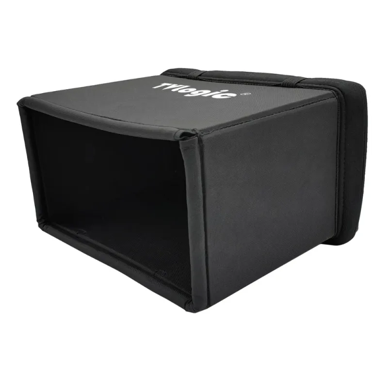 This TVLogic Sun Hood fits on your F-7H or F-7H Mark 2 monitor, protecting the screen from glare when used outside or in bright lighting conditions. Attach the hood to your monitor and secure it by tightening two straps at the bottom. When not in use, the hood can be folded flat for storage. An included eyepiece mask fits over it to completely block light from impacting the image.