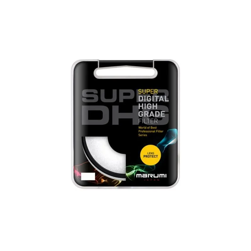 The Marumi Super DHG Protect Filter is a neutral filter that protects your camera lens without causing any unwanted filter effects. A standard protect filter can cause a lot of reflection and distortion to the sensor of your camera. The Marumi Super DHG protect filter is equipped with a special coating to overcome this by reducing the reflecting of the incoming light. The filter is made of high quality, clear glass and is water and dirt repellent. The transparent filter does not effect the exposure time and can therefore, be left on the camera lens. Due to the thin design, the Super DHG protect filter is suitable for wide-angle lenses without causing vignetting to the image.