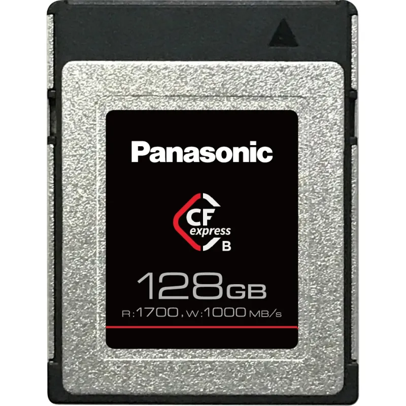 Panasonic's professional CFexpress 128GB card with high read/write speeds designed for long term use and secure recording.