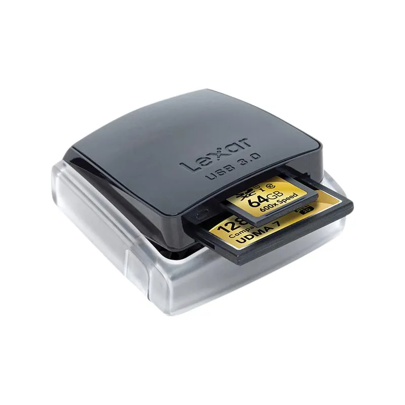 The Lexar ® Professional USB 3.0 Dual-Slot Reader is a professional-level, portable USB reader that provides maximum high-speed performance, with a USB interface speed up to 500MB/s.* It lets you leverage the performance capabilities of the latest UDMA CompactFlash ® (CF) (including UDMA 7 CF 6.0) and SD™, SDHC™, SDXC™**, and SD UHS-I and UHS-II (SD 3.0) memory cards.