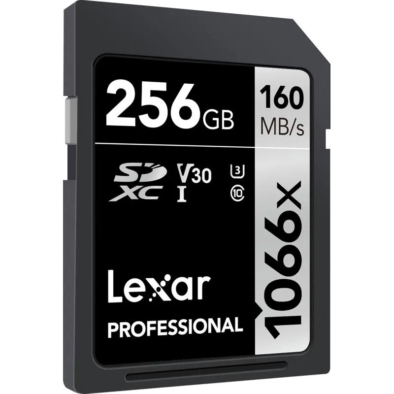 High-speed performance when you need it most. Designed for your DSLR or mirrorless camera, the Lexar® Professional 1066x SDXC™ UHS-I Card SILVER Series lets you quickly capture and transfer high-quality photos, including Full-HD and 4K UHD video, with read speeds of up to 160MB/s and write speeds of up to 120MB/s1. This dramatically accelerates workflow from start to finish maximizing your creativity.