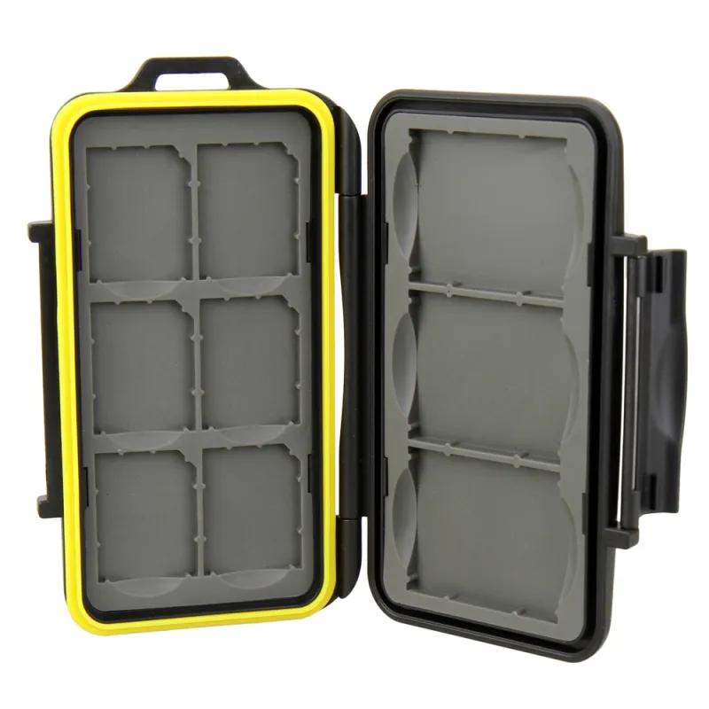 The JJC MC-SD6CF3 Multi-Card Case is a strong and splash-proof storage solution for 6 SD and 3 Compact Flash memory cards. The moulded rubber interior absorbs any shocks and ensures that the memory cards stay in position when you put the Multi-Card Case in your bag. It also protects your precious cards from dust and other debris. The ergonomic locking system is easy to open and close again.