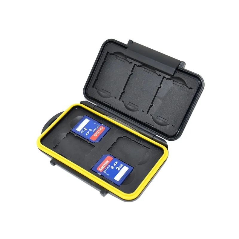 The JJC MC-XQDSD7 Multi-Card Case is a strong and splash-resistant storage option for 3 XQD or CFexpress Type B and 4 SD memory cards. The molded rubber interior absorbs any shocks and ensures that the memory cards stay in position when you put the Multi-Card Case in your bag. Your valuable cards are also protected from dust and other dirt. The ergonomic locking system is easy to open and close again
