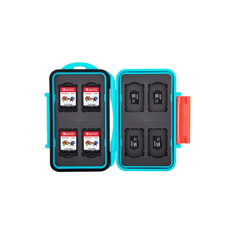 The JJC MC-SDMSD16 Memory Card Case is a strong and splash-proof storage solution for eight Nintendo Switch Game Cards and eight micro SD memory cards. The moulded rubber interior absorbs any shocks and ensures the memory cards stay in position when you put the Multi-Card Case in your bag. It also protects your precious cards from dust and other debris. The ergonomic locking system is easy to open and close again.