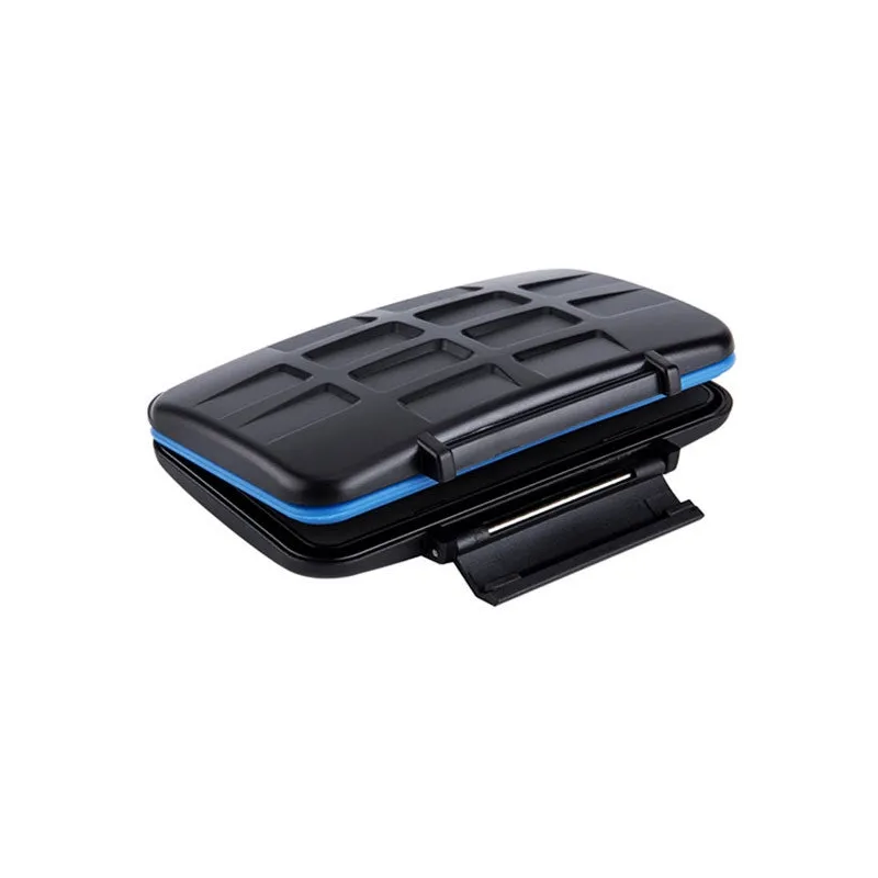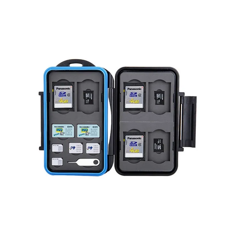 The JJC MC-STM18 Memory Card Case is a strong and splash-proof storage case for six SD memory cards, six micro SD memory cards, two SIM cards, two micro SIM cards and two nano SIM cards. The moulded rubber interior absorbs any shocks and makes sure the memory cards and sim cards stay in position when you put the Memory Card Case in a bag or pocket. Your precious cards are also well protected from dust and other dirt. The ergonomic locking system is easy to open and close again.