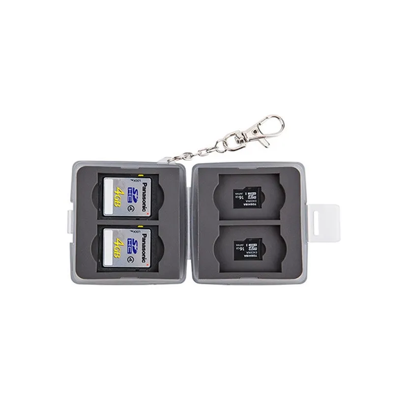 The JJC MC-11D Memory Card Case offers protection for four SD and four micro SD memory cards. The absorbent moulded rubber interior ensures that each card stays in position and cannot be damaged by for example shocks. The MC-11D can also be easily attached to a belt or keychain. Handy for travelling!