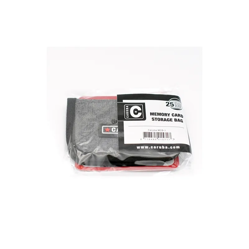 The Caruba Memory Card bag is a nifty pouch that is suitable for storing at least 4 memory cards. The bag is equipped with a Velcro closure and 4 mesh pockets that fit both CF and SD cards.