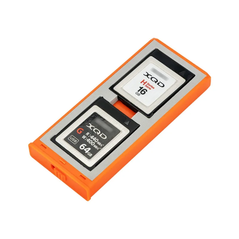 The sturdy and durable JJC MCK-XQD4GO Memory Card Case offers protection for four XQD cards. The absorbent moulded rubber interior ensures that each card stays in position and cannot be damaged by for example knocks.