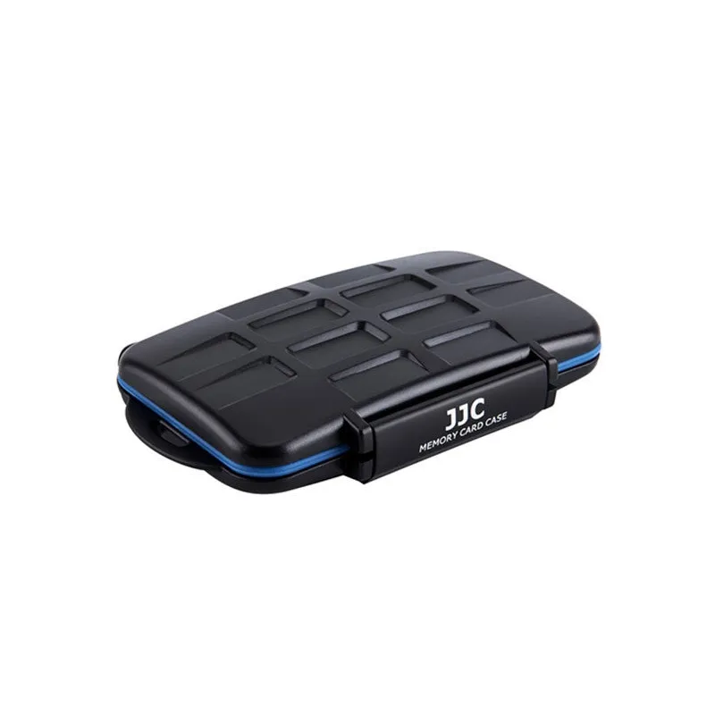 The JJC MC-ST16 Memory Card Case is a strong and splash-proof storage case for eight SD and eight micro SD memory cards. The molded rubber interior absorbs any shocks and ensures that the memory cards remain in position when you put the Memory Card Case in a bag or pocket. Your precious cards are also well protected from dust and other dirt. The ergonomic locking system is easy to open and close again.