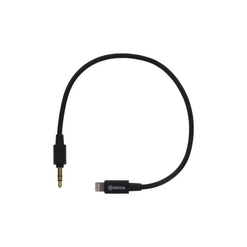 The Boya Universal Adapter BY-K1 3.5mm TRS to Lightning is an adapter cable that you can use to record sounds with an iPhone, iPad or iPod Touch with Lightning input. The cable is Apple MFi (Made for iPhone) certified and has a length of 200 mm. On one side there is a 3.5mm male jackplug (TRS) and on the other side the cable has a male Lightning connector. Compared to other cables in the market, you benefit from a more durable, thicker cable and therefore have a smaller chance of cable breakage.