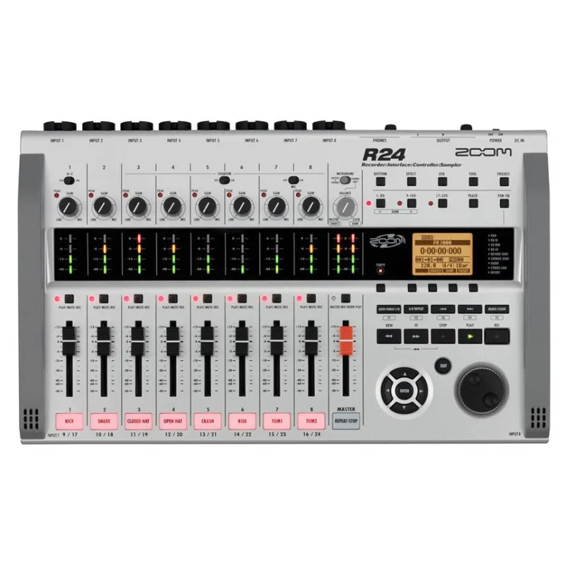 The R24 Multi-Track Recorder, Interface, Controller, and Sampler from Zoom unites many different audio tools into a single powerful unit; it's a stand-alone multi-track recorder, and a USB 2.0 computer audio interface/control surface, as well as a battery powered field recorder, mixer, drum machine, and sampler. Whether you're recording musicians, working on an indie film, or taking notes in biology class, you'll always have a use for the Zoom R24.