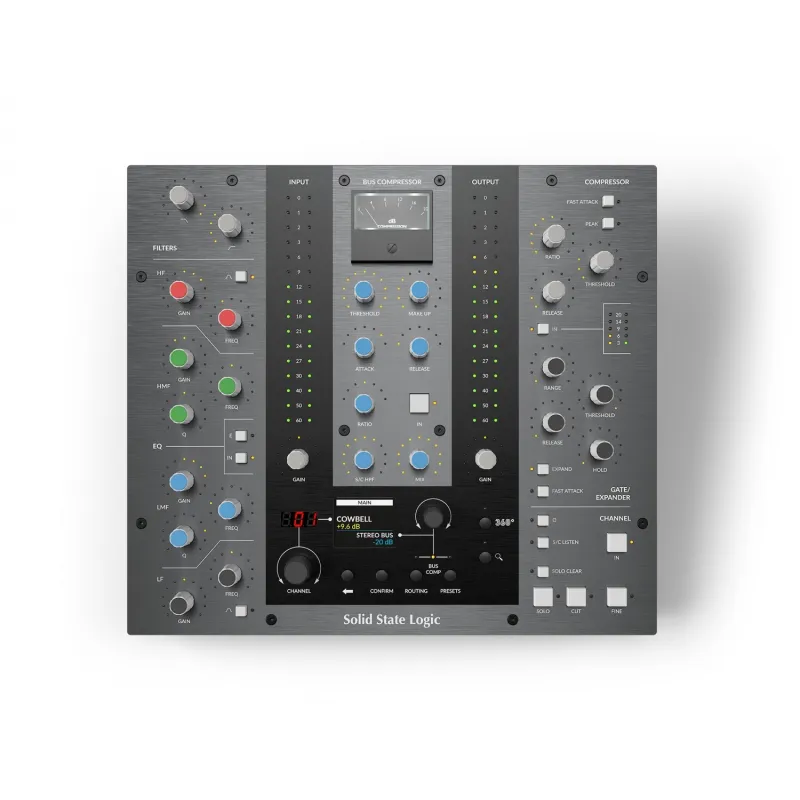 UC1 is a hardware plug-in controller like no other. Dedicated knob-per-function Channel EQ and Dynamics controls, centre section featuring full Bus Compressor controls and authentic moving-coil gain reduction meter combine to offer the most creative, intuitive, and ultimately effective way of controlling the new SSL Native Channel Strip 2 and Bus Compressor 2 plug-ins within your DAW session.