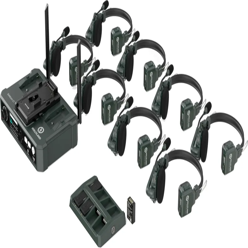 Each intercom headset comes with a spare lithium battery for convenient field replacement, keeping systems up and running with minimal downtime. The batteries are rechargeable externally by a dedicated multi-port charger. Each takes only 2.5h for a full charge that supports up to 10h runtime of a remote headset and 5h-6h runtime of a master headset depending on the number of remote headsets connected.