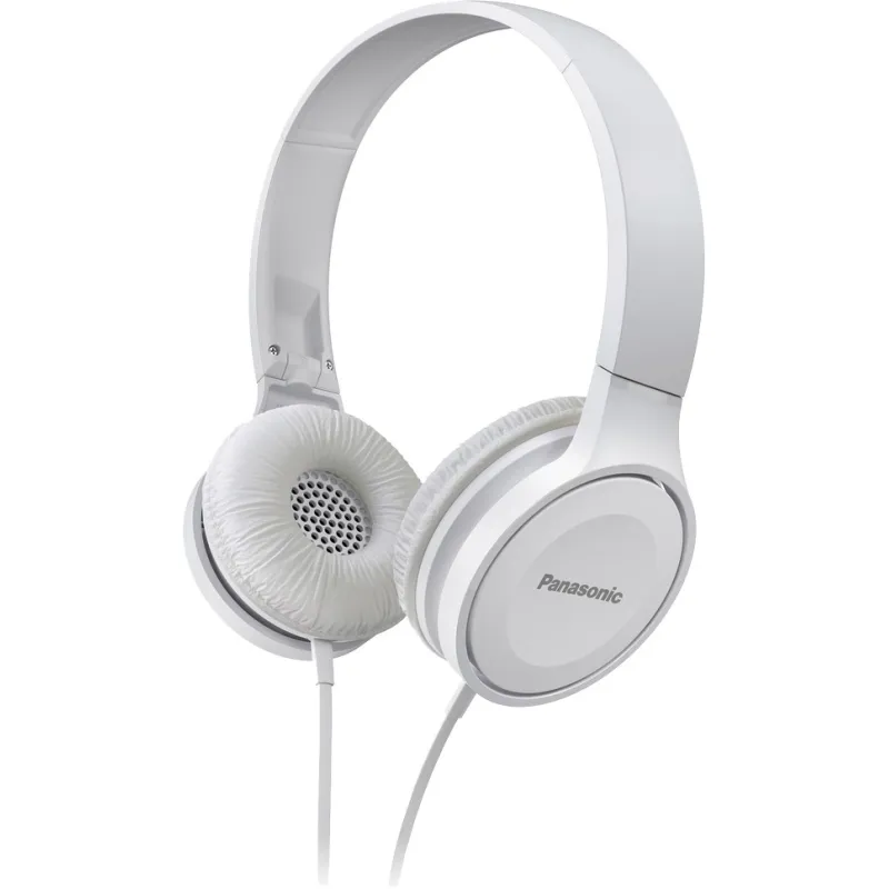 Panasonic RP-HF100E-W On-Ear Headphones, White, 30mm driver, Foldable