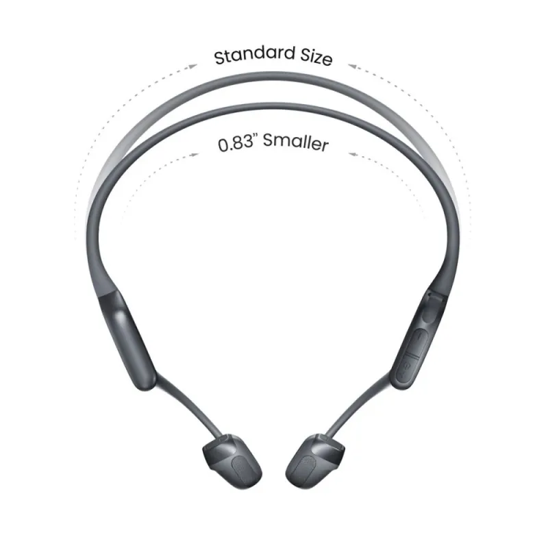 Shokz OpenRun Pro 2 mini ausinės suteikia iki 12 valandų garso ir turi triukšmo slopinimo mikrofonus.