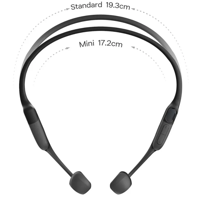 Shokz OpenRun Mini yra 0.83 colio (21mm) mažesnės nei standartinė versija.