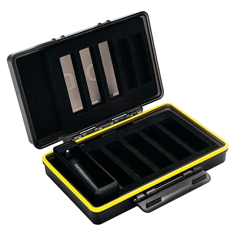 Provides storage for up to 10 batteries, 8 AA batteries and 2 AAA batteries. The interior foam cutouts hold the batteries snugly in place, making easy to find the right battery. Made of high-impact environment-friendly PC plastic to provide years of reliable use and easy for carrying around efficiently. Silicone O-ring seal ensures a dry and safely protected inside.