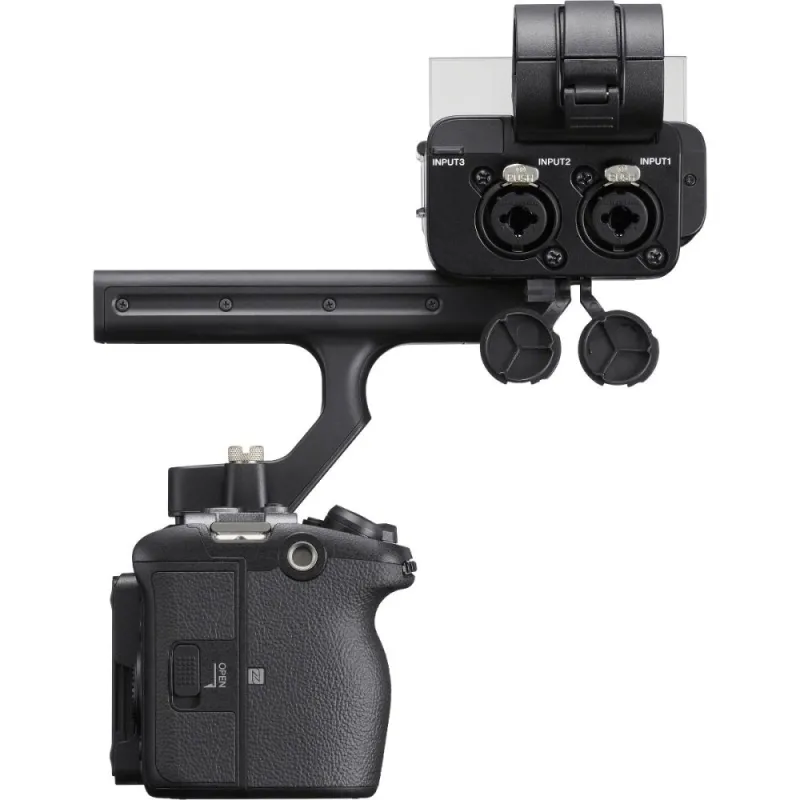The XLR handle unit with two connectors allows for stable shooting in challenging positions.