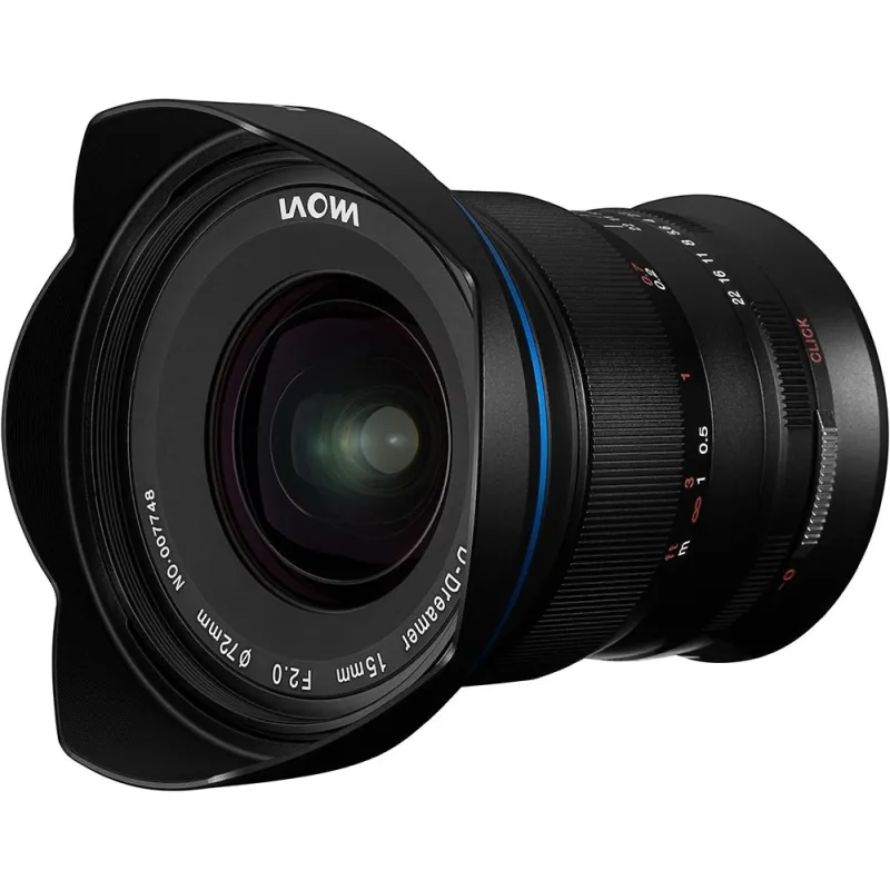 The optical construction of the lens consists of twelve elements arranged in nine groups. Three low dispersion lenses and two aspherical glasses ensure the highest image quality, edge-to-edge, even at wide-open aperture. Unlike competing wide-angle lenses, the front lens of the Laowy 15 mm f/2.0 allows the fitting of standard photographic filters (72 mm in diameter). This feature is sure to be appreciated by all landscape and architectural enthusiasts.