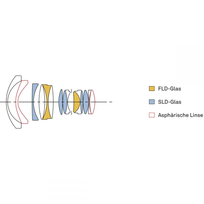 *FLD glass is ultra-low-dispersion glass that offers performance of the highest level. Highly transparent, its refractive index and dispersion are extremely low as compared to conventional types of glass. It offers characteristics very similar to those of fluorite, which is valued for its high anomalous dispersion. These characteristics minimize residual chromatic aberration (secondary spectrum), which cannot be corrected by ordinary optical glass, while helping to produce sharp, high-contrast images.