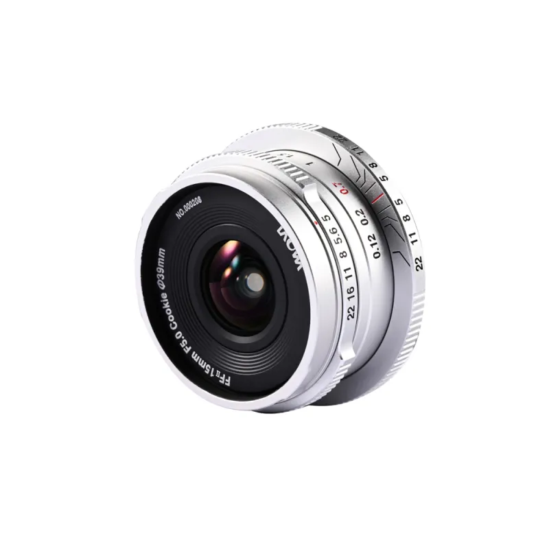 The Laowa 15mm f/5 Cookie FF is a compact pancake-style ultra-wide angle lens designed for full-frame mirrorless cameras. Weighing only 104g, it offers an impressive 110-degree angle of view, making it perfect for street, landscape, and everyday photography.