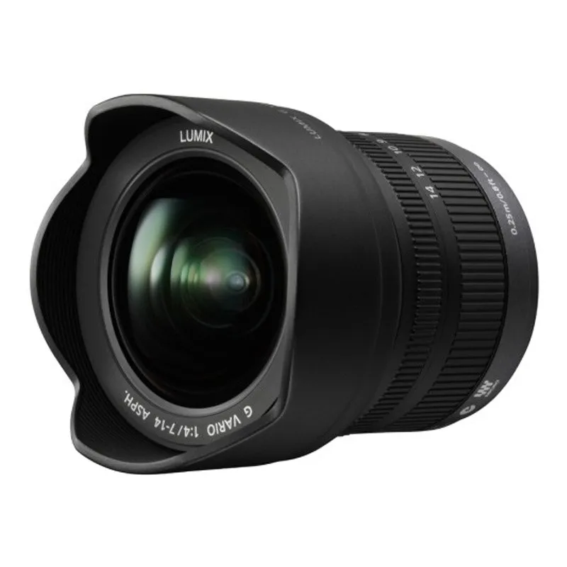 In spite of its impressive wide-angle zoom range of 7-14mm (35mm film camera equivalent; 14-28mm), this lens is surprisingly compact and lightweight for casual on-the-go use. Taking advantage of its wide, 114-degree angle of view, it enables to fit subjects into the frame easily even when shooting indoors where the distance is limited. The world looks extraordinary when viewing through the new lens, allowing photos and movies to be recorded with a uniquely rich perspective.