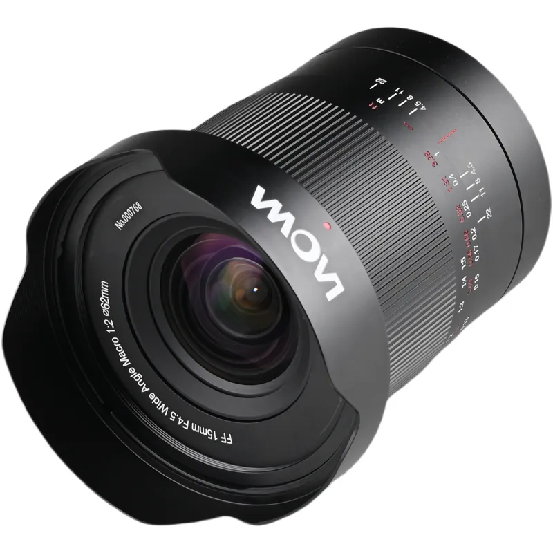 The Laowa 15 mm lens offers an ultra-wide perspective of 110.5 degrees, making it perfect for landscapes, architecture, and macro photography with a 0.5x magnification. This allows photographers to create captivating images by combining foreground subjects with expansive background details.