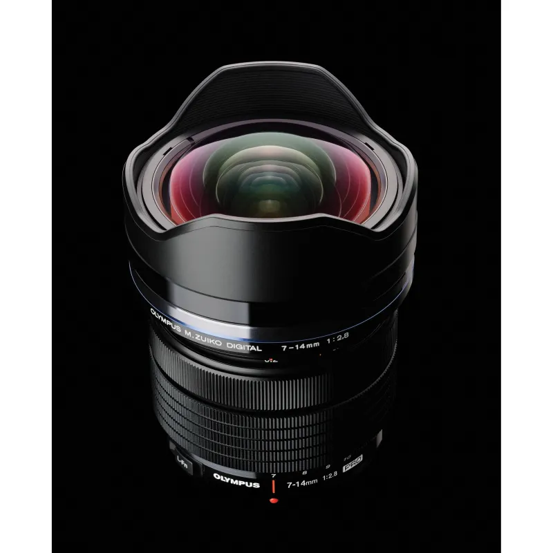 A versatile wide-angle zoom for Micro Four Thirds mirrorless cameras, the M.ZUIKO Digital ED 7-14mm f/2.8 PRO Lens from Olympus is a 14-28mm equivalent lens featuring a constant f/2.8 maximum aperture for consistent performance throughout the zoom range. Various aspherical, extra-low dispersion, and high-refractive index elements are incorporated within the design, and help to minimize chromatic aberrations and distortions for increased clarity and sharpness. Additionally, a ZERO coating has been applied to elements to control flare and ghosting for improved contrast and color fidelity. A weather-resistant design benefits handling in trying conditions while an L-Fn button offers lens-based control over various settings. As a fast, high-performance wide-angle zoom, this Micro Four Thirds lens pairs an optimized optical layout with refined physical details to excel in a variety of working conditions.
