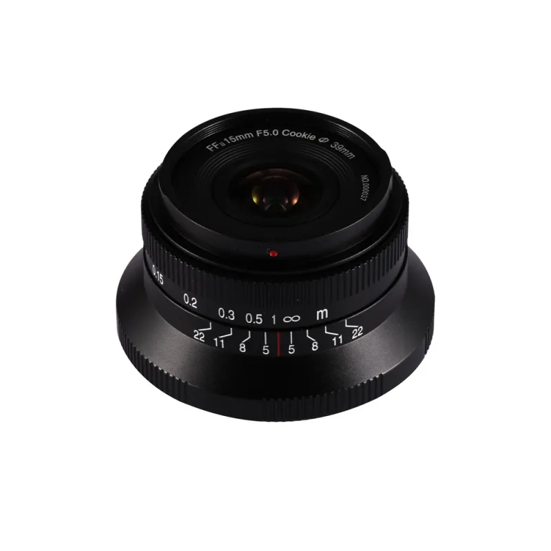 The Laowa 15mm f/5 Cookie FF is a pancake-style ultra-wide angle lens designed for full-frame mirrorless cameras. Weighing just 158g, it features an auto aperture function for enhanced usability and offers a remarkable 110-degree angle of view, making it perfect for street, landscape, and everyday photography.