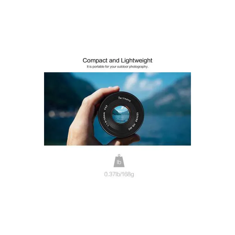 A flexible optic for Micro Four Thirds-mount mirrorless cameras, the 50mm f/1.8 Lens from 7artisans is an especially compact portrait-length prime lens. Featuring a bright f/1.8 maximum aperture, this lens strikes an ideal balance between portability and speed to make it well-suited for everyday shooting. Complementing image quality, a multi-layer coating has been applied to reduce ghosting and flare in order to realized greater contrast and color fidelity, especially when working in harsh lighting and backlit conditions. The manual focus design permits working with subjects as close as 1.6' away and its 12-blade diaphragm produces a smooth, rounded bokeh quality.
