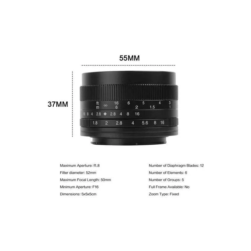A flexible optic for Sony E-mount mirrorless cameras, the 50mm f/1.8 Lens from 7artisans is an especially compact portrait-length prime lens. Featuring a bright f/1.8 maximum aperture, this lens strikes an ideal balance between portability and speed to make it well-suited for everyday shooting. Complementing image quality, a multi-layer coating has been applied to reduce ghosting and flare in order to realized greater contrast and color fidelity, especially when working in harsh lighting and backlit conditions. The manual focus design permits working with subjects as close as 1.6' away and its 12-blade diaphragm produces a smooth, rounded bokeh quality.